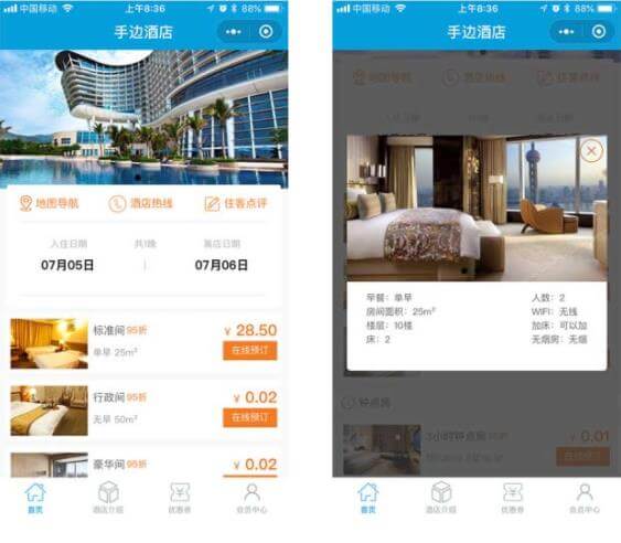 亚东酒店行业小程序开发